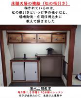 2019-07-10 / 最終更新日時 : 2020-09-12 hirakata アメブログ記事の紹介 町家の文物 『床脇・天袋の襖絵:松の根引き』京町家再生シリーズ1 床脇・天袋・襖絵座敷の床の間の横、床柱をはさんだ反対側を床脇と言います。床の間と床脇を合わせて、床の間と呼ぶこともあるようです。床脇には…大阪枚方になぜか京町家のブログ https://ameblo.jp/hirakata-machiya/entry-12611458459.html 『菅公人形』お正月も終わったので菅公人形(かんこうにんぎょう)を飾りました。菅原道真公のお人形さんです。ひらかた京町家に残されていたものでいつの時代のものかはっきりしませ…大阪枚方になぜか京町家のブログ https://ameblo.jp/hirakata-machiya/entry-12568047725.html?frm=theme Pz-LinkCard- URLの記述に誤りがあります。- URL= 『ひらかた京町家のひな祭り』今年の三月三日(日)にはひらかた京町家に残されている四組のお雛様を飾って、皆さまにご覧いただけるよう無料公開いたします。 江戸時代から続く旧枚方宿の商家の分…大阪枚方になぜか京町家のブログ https://ameblo.jp/hirakata-machiya/entry-12442122628.html?frm=theme 『水屋箪笥』ひらかた京町家に水屋箪笥が帰ってきました。 一昨年の再生改修工事の時に修理に出してから1年以上経ちました。新しい材で補修してもらったところともとからの部分と違…大阪枚方になぜか京町家のブログ https://ameblo.jp/hirakata-machiya/entry-12370449705.html?frm=theme 『神猿(まさる)さま』ひらかた京町家の再生・改修工事の際に移築後百年間の間に、ためこまれ、たまってきた様々なものを整理しました。昔の人は、なんでも捨てずに残す(押し込んでおく?)の…大阪枚方になぜか京町家のブログ https://ameblo.jp/hirakata-machiya/entry-12369960283.html?frm=theme 『五月人形』五月人形を飾ってみました。 おそらく大正から昭和初期のものと思われます。 中央の武者と従者は、明治から大正にはやった武者人形の形式だそうです。武者と従者、後ろ…大阪枚方になぜか京町家のブログ https://ameblo.jp/hirakata-machiya/entry-12368193434.html?frm=theme 『お雛様のお道具たち?』必ずしも、お雛様のお道具というわけではありませんが、紹介していなかった小物を紹介しておきます。 随分痛んでいますが、三味線と胡弓とお琴のミニチュア ひらかた京…大阪枚方になぜか京町家のブログ https://ameblo.jp/hirakata-machiya/entry-12367833405.html?frm=theme 『お雛様達以外のお人形さんたち』ひな祭りの時期はとっくの昔に終わりましたが、お雛様達と一緒に飾ったその他のお人形さん達も紹介しておきます。 菅公人形(かんこうにんぎょう)菅原道真公のお人形さ…大阪枚方になぜか京町家のブログ https://ameblo.jp/hirakata-machiya/entry-12367498455.html?frm=theme 『ひらかた京町家のおひな様(大正末年)』四つ目は、大正十五年と箱書きがある一代前のおひな様です。 他のおひな様と比べて新しいので、保存状態が良いのは当たり前ですが一代前の世代では、女の子は一人だけ…大阪枚方になぜか京町家のブログ https://ameblo.jp/hirakata-machiya/entry-12356282480.html?frm=theme 『ひらかた京町家のおひな様(明治後期?)』三つ目のおひな様は、おそらく二代前の明治後期ではないかと思われるのおひな様です。 二つ目の明治前期と思われるおひな様と三つ目の明治後期と思われるおひな様は江…大阪枚方になぜか京町家のブログ https://ameblo.jp/hirakata-machiya/entry-12356066336.html?frm=theme 『ひらかた京町家のおひな様(明治初期?)-訂正版』ひらかた京町家の二番目のおひな様はおそらく、三代前のひらかた京町家を建てた女性のものと思われるものです。 このおひな様は、お内裏様とお雛様のお二人だけが残って…大阪枚方になぜか京町家のブログ https://ameblo.jp/hirakata-machiya/entry-12355799364.html?frm=theme 『ひらかた京町家のおひな様(江戸時代後期)』ひらかた京町家は、HPの由来の所にも書きましたが本家は、枚方宿に四軒あった造り酒屋のひとつで枚方の郷土史家・中島三佳さんのご著書「東海道 枚方宿と淀川」に元禄…大阪枚方になぜか京町家のブログ https://ameblo.jp/hirakata-machiya/entry-12355475149.html?frm=theme 『ひらかた京町家のおひな様』ひらかた京町家に残されていたお雛様達を飾ったので紹介させていただきます。 ひらかた京町家には、万庄(よろしょう)の四代前から一代前まで一組ずつ合計四組のお雛様…大阪枚方になぜか京町家のブログ https://ameblo.jp/hirakata-machiya/entry-12355298312.html?frm=theme 『ミニ展示「くらわんか舟の営業権について」』ひらかた京町家に残されていた、くらわんか舟(茶船)の資料を使って、枚方公園駅近くにある鍵屋資料館にて、ミニ展示「くらわんか舟の営業権について」が、10月8日ま…大阪枚方になぜか京町家のブログ https://ameblo.jp/hirakata-machiya/entry-12315808657.html?frm=theme 『姥が餅(うばがもち)』滋賀県の宿場町・草津宿に「姥が餅」という昔からの名物がありますが、なぜか「ひらかた京町家」に、この「姥が餅」の、皿?小盆?が五個ほど残されていました。 下の…大阪枚方になぜか京町家のブログ https://ameblo.jp/hirakata-machiya/entry-12306837221.html